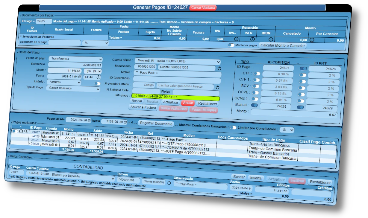 • Comprobantes de Retención: Emisión automática de comprobantes de ISLR e IVA al momento de registrar pagos o cobros.