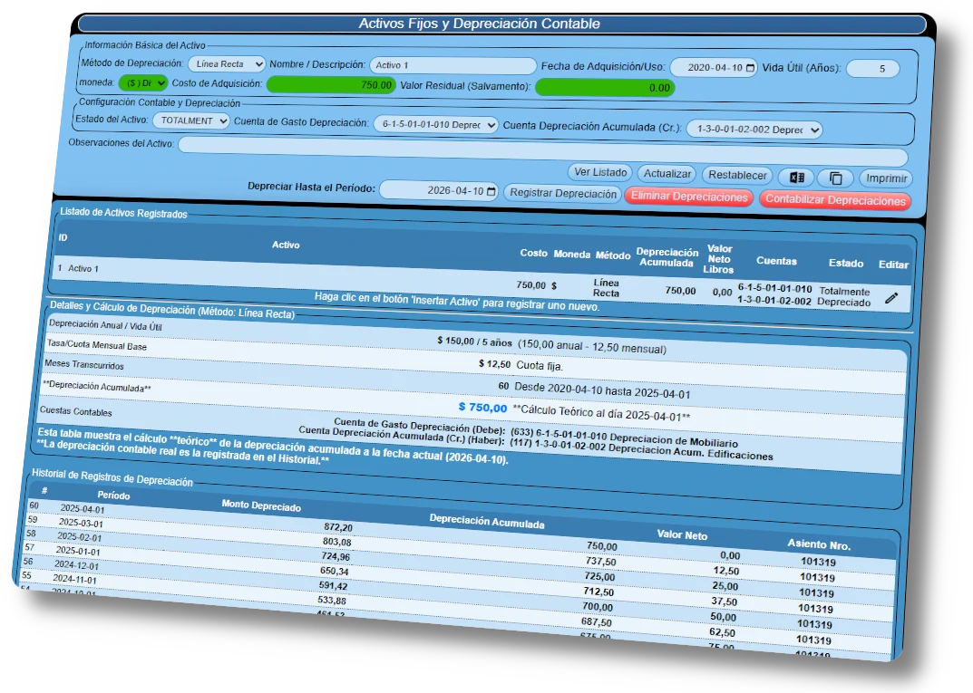 Control de Activos Fijos Pyme'S: Cálculo de depreciación automática y gestión patrimonial